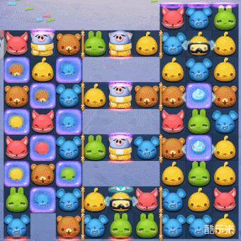 3、本关的步数并不多,需要收集的雪块数量却不少。所以在整个闯关的过程中,还要尽量制造特殊棋子,并将它们进行组合使用,来加速我们的收集速度。因为掉落阀门中会掉落目镜射线,所以我们只要制造旋风小丑和暴走精灵,就能很容易的组合出特效了。