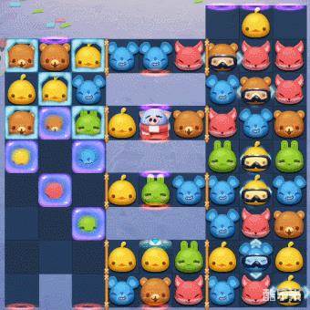1、本关任务所需的雪堆,需要消除爱斯基摩猪后才能生成在棋盘上。而本关的爱斯基摩猪,只会在棋盘中间列的最上方掉落。由于棋盘中间被切割了大量棋格,且还有栅栏阻隔,匹配空间非常狭小。所以我们开局,需要先将左侧区域的果冻消除,再消除左侧区域虫洞下方的棋子,让爱斯基摩猪掉落通过虫洞掉落到左侧区域,才能更容易的消除爱斯基摩猪生成雪堆。