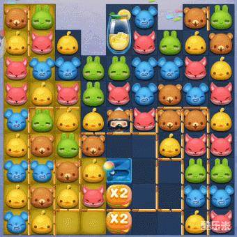 3、由于带颜色棋格,只会在红色和黄色之间转换,红色和黄色棋子的掉落补充速度,极大程度的决定我们的收集效率。所以我们在闯关期间,还要尽量制造特殊棋子和特效组合使用。利用它们的范围消除,不仅加速红色和黄色棋子的补充速度,还能直接收集更多气泡水。