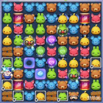 1、想要燃放烟花,需要在烟花筒旁,消除与燃放烟花颜色相同的棋子。本关的4个烟花筒,均在棋盘中的传送带上,会随传送带移动位置。而它们周围有大量的障碍物,我们很难找到就近消除棋子的机会。正所谓磨刀不误砍柴工,我们开局应当优先消除棋盘中的障碍物,扩大我们的匹配消除空间,为更容易的燃放烟花打下基础。