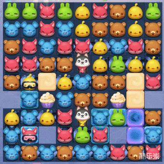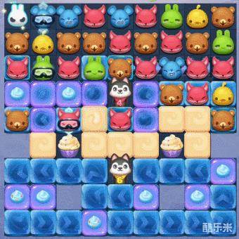 2、棋盘中有2只哈士奇,它们胸前都有一个带有颜色的数字,只要消除数字指定数量的同色棋子,哈士奇就会帮助我们消除,其身周一圈的棋子或障碍物。所以我们在就近消除障碍物的同时,需要优先消除与哈士奇胸巾同色的棋子,加速我们消除障碍物的速度。