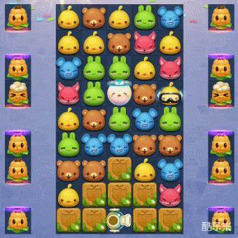 1、本关任务需要收集的超级玉米,均在棋盘左右的小空间内,我们无法匹配升级来收集它们。所以我们开局,只能在棋盘中间尝试制造特殊棋子,利用特殊棋子的范围攻击去升级收集超级玉米。而依本关的地型,在中间制造横向的目镜射线效果最佳。