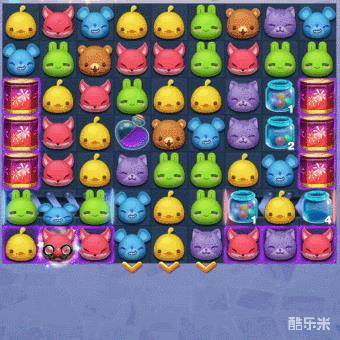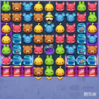 3、本关的步数并不多,而染色水瓶的收集也并不容易。所以生成在棋盘上的紫色棋子,最好只在烟花筒旁边消除,以免浪费紫色棋子的消耗。此外,我们在整个闯关的过程中,还要多多制造特殊棋子,利用特殊棋子的范围消除,可以更快的收集染色水瓶,加速紫色棋子的生成。