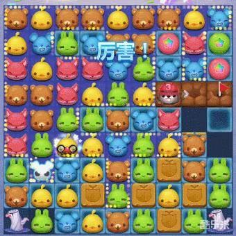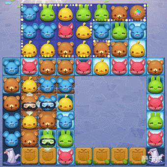 2、棋盘下移后,棋盘的空间并不大,我们需要优先消除棋盘中的木箱障碍物,扩大匹配消除空间,才能更有效率的去消除雪块障碍物。由于这里的部份棋格由移动木桥组成,会随步数消耗左右移动位置,我们在消除时还要注意移动木桥的位置。