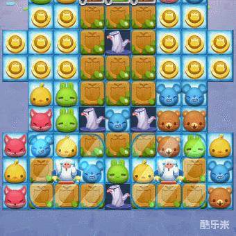 2、棋盘中的雪块障碍物最多,但是它们并不会挡住棋子下落。所以我们只要先将金币、木箱等会阻碍棋子掉落的障碍物消除,就可以获得更大的消除空间,去更容易的消除雪块障碍物。如此,消除效率可以提高许多,自然可以节省更多通关步数。