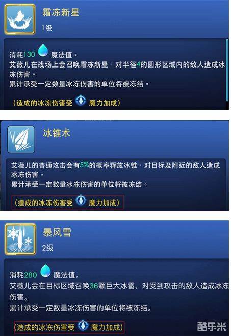 冰墙:(升级增加冰墙持续时间和魔法值消耗)