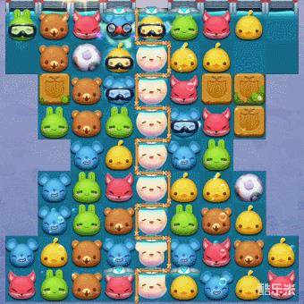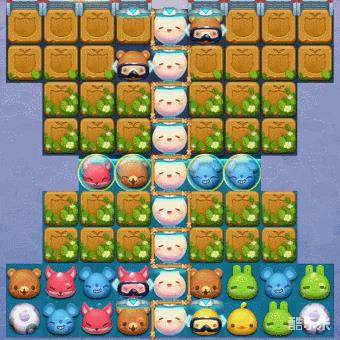 2、本关的木箱数量非常多,且均需要多次攻击,想要消除非常困难。不过棋盘中间列的掉落阀门下会不停掉落汤圆,且其左右的掉落阀门也有较大概率掉落目镜射线,所以只要我们多找机会将汤圆和目镜射线交换,消除木箱并不是太过困难的事。