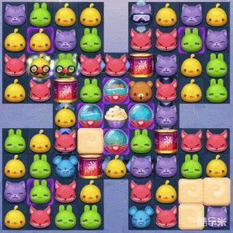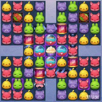 2、本关的棋盘边缘被切割了部份棋格,只有棋盘中间的空间较为完整,但棋盘中间又有奶油蛋糕和汉堡存在。所以我们在攻击万能孵化蛋的同时,还要尽快消除汉堡,并控制奶油蛋糕中流出的奶油蔓延,才能更有效率的去生成棋子和燃放烟花。