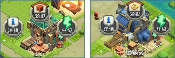 3. 建筑,前期记得升级运输站和工厂。运输站可以生产金币,等级越高,每小时可生产的金币越多;工厂可以生产货物,等级越高,每小时生产的货物就会越多。同时,大家要注意升级仓库和金库,提高货物和金币的存储上限,以积累金币和货物来升级其他的建筑物。