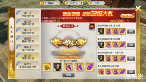 6,开服第六天为等级排行活动:
