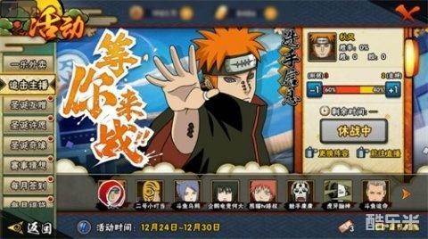 此外,除了圣诞活动,活动中心也新增“等你来战,主播追击战”活动。在12月25日-12月30日期间,每天晚上19:30-21:00,忍者学员可以在活动中心参与“等你来战”活动,向自己喜欢的主播发起挑战。