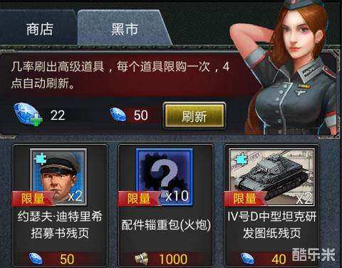 3、商城获得:在“军需处”—“黑市”中直接购买将领碎片,商城中直接用钻石进行购买,购买时迅速升阶将领行之有效的方法;