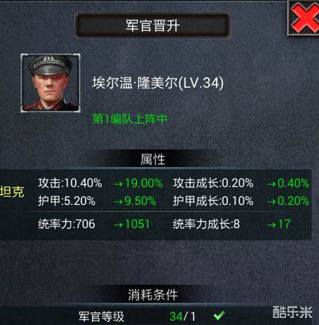 5、获得将领后,坚持训练,提升将领等级和统率力;如果想迅速提升将领等级可以选择“军官突飞”。在机密研发和名将寻访中,除了能够获得想要的坦克图纸和军官招募书,还能获得军官经验卡等资源,经验卡相应的经验可以用来突飞,快速提升将领等级。