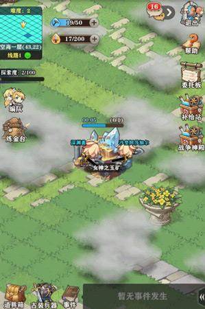 开放后,玩家可以从公会界面处进入公会副本参与探索空海秘境,位于空海内的大陆碎块上有着很多迷雾,而用空海特产的带有魔力的各种矿石与黏土通过炼金的方式制作带有魔力的号角,能对这些顽固的迷雾有不同程度的驱散效果。在进入空海的探索后,团长大人获得行动力之后需要消耗其来采集种带有魔力的矿石,继而通过炼金制作各种带有魔力的号角,使用号角可以驱散迷雾,开拓未知的区域! 潜藏在迷雾中的,既有高级的矿藏,也有强大的敌人,还有许多未知的事件。