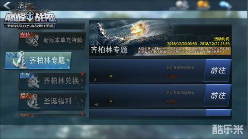 随着版本上线,游戏内正式开启圣诞节福利回馈专题,全新军需航母-齐柏林上线,使用相应兑换券搭配金币购买,即可永久获得!此外,军需特惠、双倍祝福、战斗掉落等种种福利亦会全面开启,总之精彩不容错过。