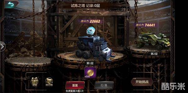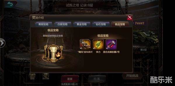 玩家每通关一层可以获得金币道具奖励,每10层更是会有高额奖励的宝箱,有几率获得战车碎片以及战车装备胶囊。
