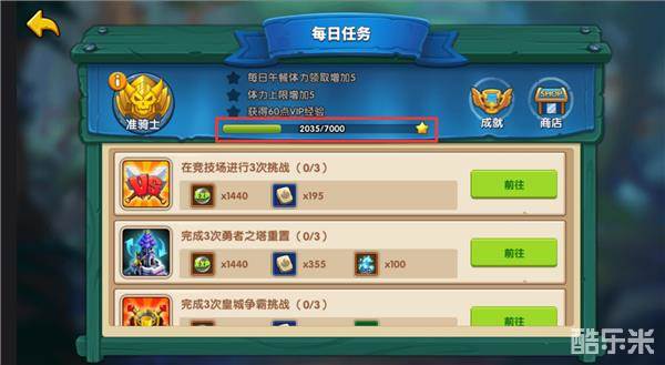 完成每日任务可以得到大量经验和材料,不同的每日任务所奖励的材料也不同。完成每日任务还能获得活跃币,同时获得等额的活跃经验,收集活跃经验收集骑士头衔,就可以给全军增加属性。