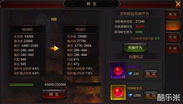 转生需要消耗一定的剩余经验兑换修为,当前转生的修为攒满之后就能够转生,转生需要大量的经验,可以从一些经验的副本获取。多出来的经验可以兑换为修为,一天最多能够兑换五次。讲究效率的玩家也可以购买修为丹,尽快的转生提升自己的实力。
