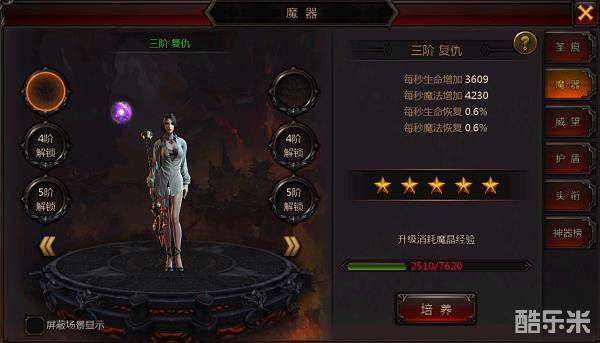 神器是一套能够全方位提升玩家能力的一个系统:圣痕—大幅增加角色攻击力;魔器—大幅增加角色的生命和魔力;威望—大幅增加角色的命中与暴击;护盾—大幅增加角色的防御。