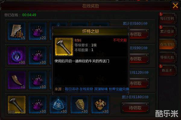 什么都不用做,在线登陆就能源源不断的获得好礼,在线时间越长,可领取的奖励越多。奖励包括升级神器所需要的各种碎片,能够帮助升级神器。