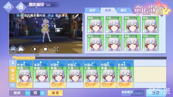 除了可以编辑自己的舞步外,歌舞姬表演时的表情和镜头切换设置都能定制,可以说是自由度极高了!在表情和镜头标签中,也有大量素材供玩家选择,大笑、害羞、wink等表情一应俱全。每个动作可根据歌曲进行快/慢调节,再配合表情和镜头的切换,经过各位连接者的细心搭配,一套完美的DIY舞步就此诞生!不会MMD软件也没关系,《命运歌姬》的DIY舞步系统就能让你轻松打造属于自己的MMD大作。舞步完成后还能进行发布,让其他小伙伴一起来欣赏和使用你的得意作品吧!