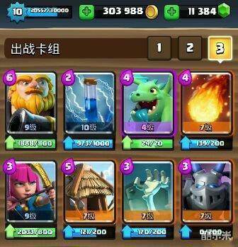 这套进攻核心是防守反击,哥布林小屋和墓碑在防守时产生的小单位以及天空部队配合家驹进行强力反攻。一般情况下进攻,必须是大费用进攻,我们的家驹如果不能跟上足够的后排和法术,下了6费甚至更多只能摸一两下塔我是不能接受的,假如对面用黄毛防守,我们的进攻就应该是家驹飞龙加火球最佳。