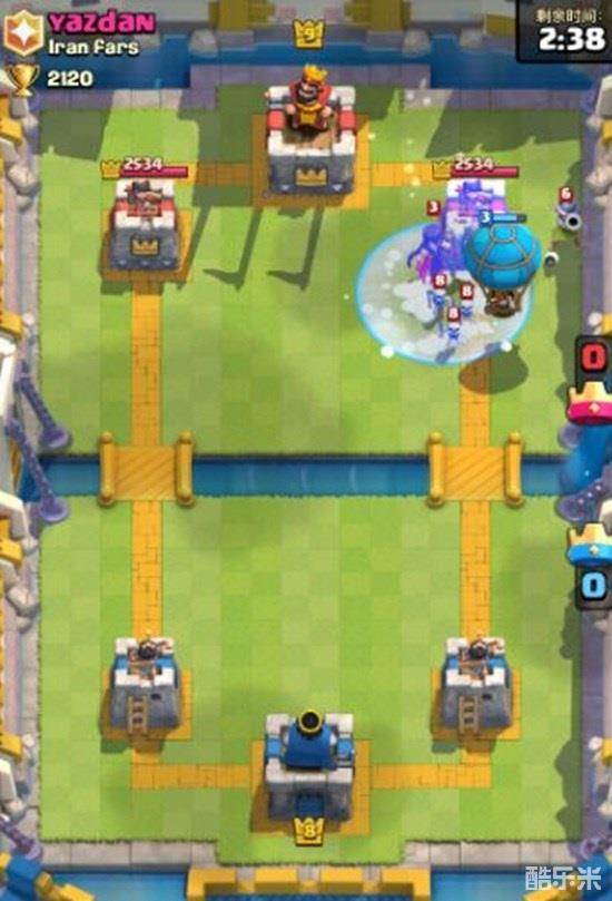 仅仅依靠冰精灵和小电来保护气球远远不够,于是该卡组中还带上了法师,超远的射程以及AOE伤害,在对抗苍蝇群时有很大的优势。而冰冻法术最好是公主塔连同防御部队一起冰住或气球还有50%血的时候丢,这样丢过去的时候气球至少还有20%以上的血量。
