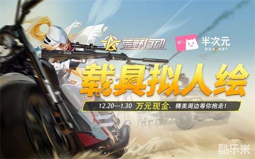 《荒野行动》与半次元携手开启载具拟人绘征集活动!2018年12月20日至2019年1月30日期间,为《荒野行动》中任意交通工具设计拟人形象,并投稿至半次元平台,即有机会抱走万元现金大奖!为荒野中经典“补漏车”设计拟人形象还有机会获得特别奖哦!各位荒野战士、绘画大触、脑洞鬼才们快来绘出你心中的“荒野车娘”吧!
