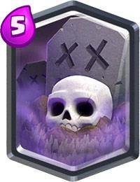 骷髅召唤:在我们的其他卡牌吸引敌方目标时使用(巨石投手/巨人等),可以源源不断的产出小骷髅进行消耗,这里放在敌方的公主塔周围能够造成较大的输出,最好是在敌方没有较好的对抗卡时在使用,比如骷髅军团/亡灵大军等。