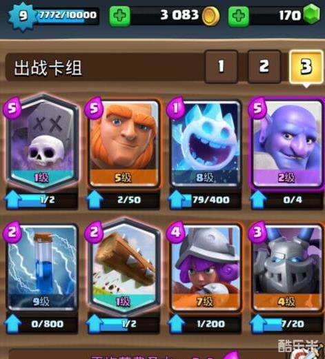 冰雪精灵:1费过牌卡,改版后虽然降低了0.5秒的冰冻时间,但是依然好用,一般用于过牌和辅助防守以及进攻,在辅助进攻下,我们可以搭配巨人,当敌方出地面卡时会被冰冻,这时其他的辅助卡则能很好的对抗,如果敌方出亡灵大军这样的空战卡,那么也能让其残血,然后搭配其他卡牌消灭。