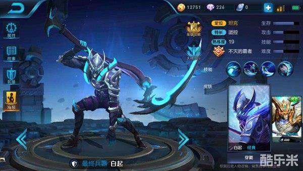 白起是一个坦克,但小视其输出能力的人也必将付出血的代价,中期是白起的强势期,能否与队友形成联动打出优势是关键。团战中以控制住敌方输出位为核心思想,可以为队友减轻很大的压力,白起是一个很有特点的坦克,无解团控,伤害出众,是一个十分适合套路的英雄,用于上分也没有丝毫问题。