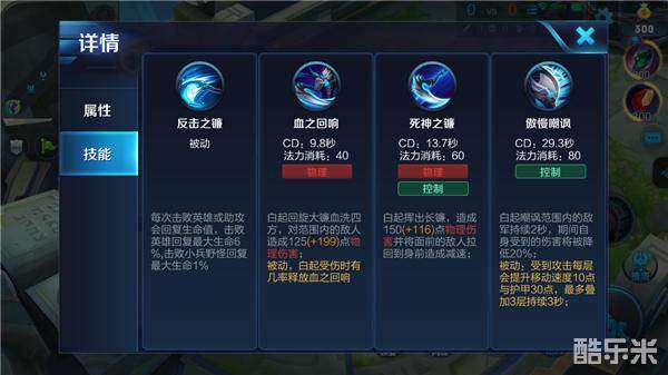 白起回旋大镰,对周围造成伤害,当白起受伤时,有几率自动释放血之回响。这个技能是白起的主要输出技能,可以用来快速推线。当白起在团战中嘲讽到多个敌方英雄时,不断释放血之回响,从而能造成极高的AOE伤害。推荐主加此技能。