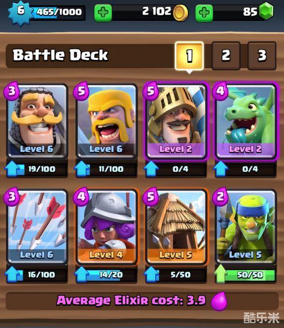 首先要端正姿势,摆脱贪生怕死,拿出一份豁出去的心态。习惯开局把哥布林之屋裸中偏左或右(被各路裸导弹大虾打哭的阴影),起手没有抓到就丢黄毛小基佬或者脑残聋在塔后排等补兵。骑士切远程后排,女巫啊法师啊这种(受日天老大教育),个人感觉三剑客哥布林和骑士也可以削同等级的基佬(也不知道亏不亏)。由于本人比较鸡贼,喜欢偷塔,王子基本在对面圣水摔光或者猛攻一路是裸甩另一路,配合剑雨偶尔也可偷个塔。小炮娘的输出不可小觑,经常是前排一群基佬三剑客,炮娘在后方疯狂的输出,拿下一塔,对面若不给于重视还能蹭掉不少主塔血量(偏爱这张卡)也是一张优质的地对空力量。