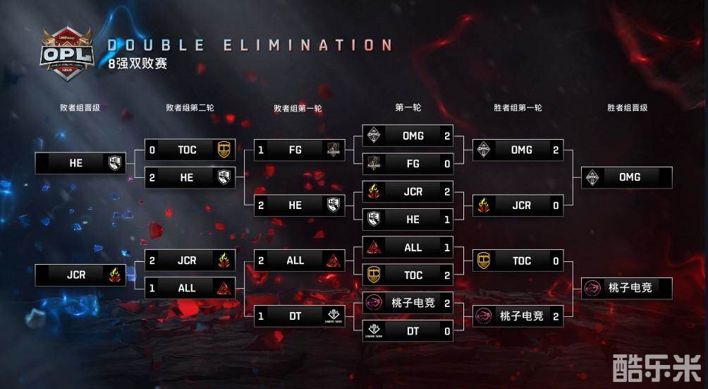 最终8支队伍经过积分赛、双败赛的厮杀正式锁定OPL职业联赛春季常规赛的正赛席位。这8支战队中,以SL、LP、FTG、GOE战队分别以A组,B组,C组,D组积分第一顺利晋级,而余下四支战队—OMG,桃子电竞,HE,JCR战队则是经过后续双败赛的比赛,一路浴血奋战成功晋级。