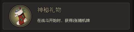 平安夜过后,从美梦中醒来的小红帽发现身边的羊毛袜子被圣诞老人装满了礼物,快看看圣诞老人送你了什么?圣诞节新版本将更新“神秘礼物”,打开神秘礼物将获得一个“在战斗开始前,获得1张随机牌”的buff效果,助你的冒险旅程更加愉快轻松!