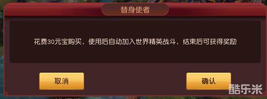 世界BOSS还有一个吸引我的就是,可以使用替身娃娃来跟世界BOSS进行PK,只要您的vip等级达到9级,就可以购买替身娃娃,购买替身娃娃只消耗30元宝,使用后自动加入世界BOSS进行战斗,战斗结束后可获得奖励。