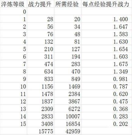 影之刃1.6版本测试服淬炼资源消耗统计,一件装备+15淬炼一共需要42959经验,就是1432片万能,个人感觉综合考虑刷乱入牌子,有乱入活动的时候刷红刀,然后精炼这条路线是比较合适的。在没出其他乱入新6星的前提下,这个也是我考虑的淬炼路线。