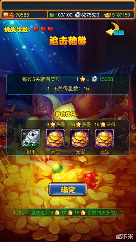 2、不同难度的貔貅对应不同的星数奖励。击败就会获得该星数。