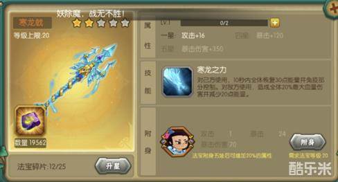 新法宝的技能为:寒龙之力;技能同时拥有一攻一守的属性。从两个属性来看,该法宝属于PK类的法宝,个人觉得敌方使用效果强于己方使用效果!