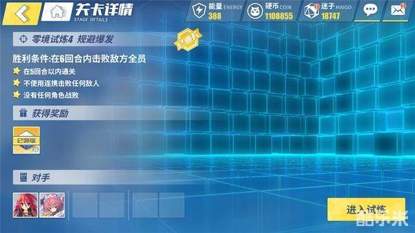在电击文库:零境交错的零境试炼玩法中,每一关都有一定的过关提示。不过在零境试炼第四章规避爆发这一关中,仅仅规避了敌方的爆发伤害可不够,由于我方伤害并不高,导致经常会在第六回合结束战斗,从而无法达成三星条件。那么,如何达成三星呢?下面就一起去看看电击文库零境交错零境试炼4规避爆发三星通关攻略吧!