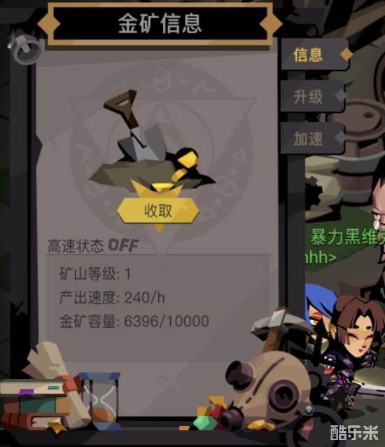 2)玩家可以对金矿进行升级,升级后产量会提升。