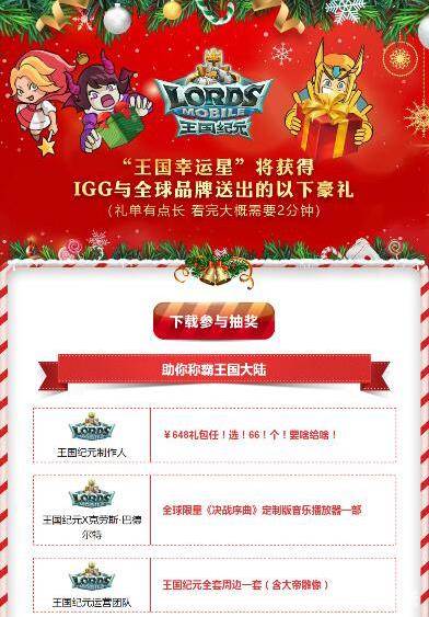 活动即将开始,礼单内容还在丰富中!玩家只要于12月22日13:00~12月30日12:59期间,下载并登陆过《王国纪元》,即可参与抽奖!