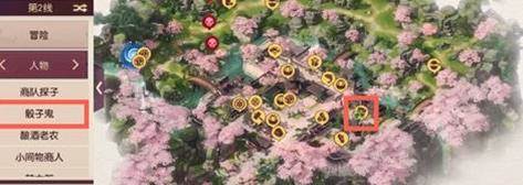 初识花牌这个位置的地图在神木町中,神木町就是新手村,大家刚出生就在的地方,所以这个位置是很好找的,我们不用换地图,只要到了在地图上到了神木町后,左边会出现一个对话框,选中其中的人物选项,找到【骰子鬼】这个人物,然后自动寻路到骰子鬼身边就可以了。骰子鬼身后有一个小胡同,我们走到这里,就是挖宝的地点,走进胡同,然后根据挖宝按钮,点击就可进行挖宝了。