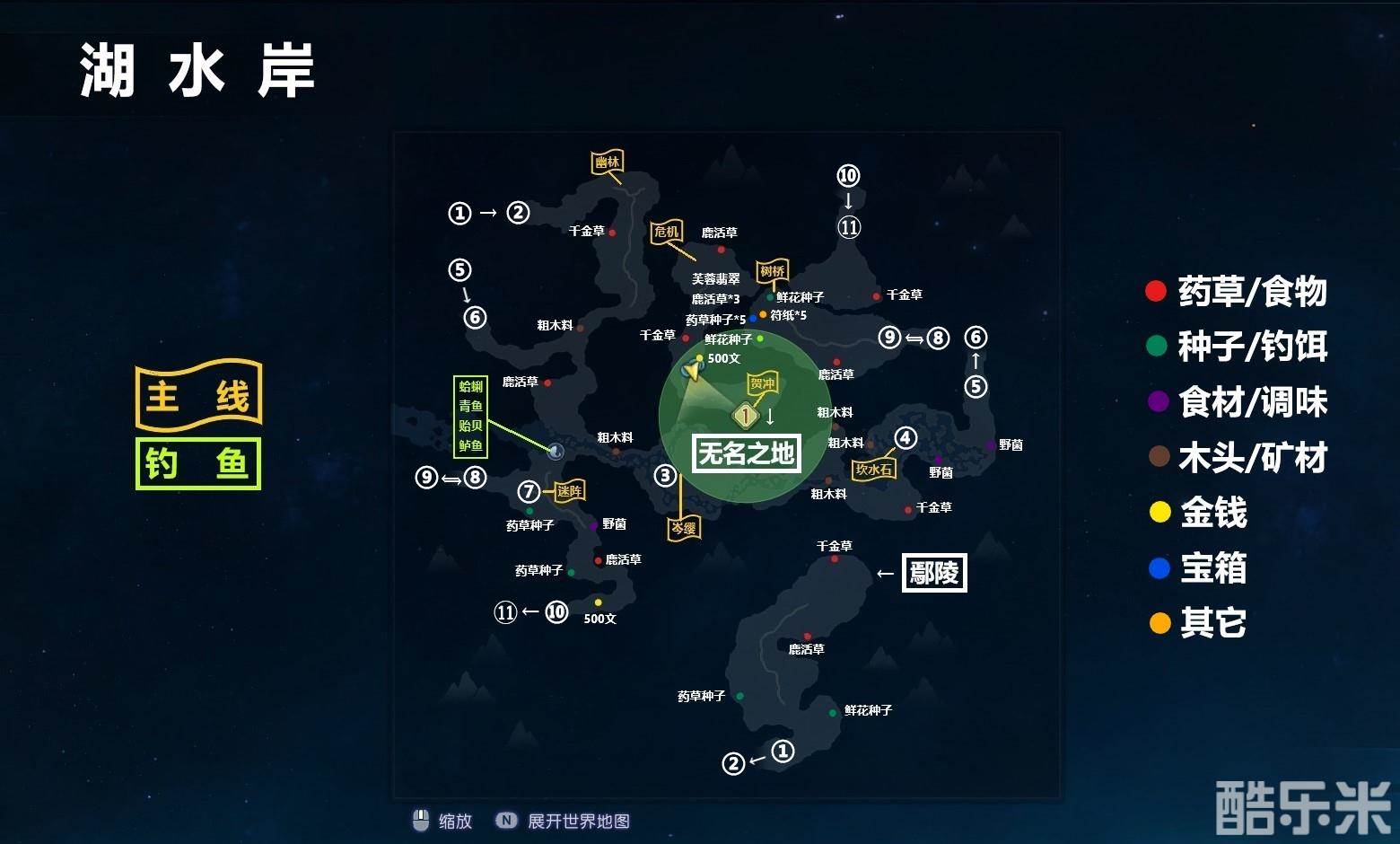 《古剑奇谭3》湖水岸全收集物品地图一览 湖水岸有哪些收集物品?