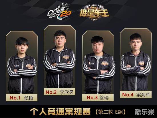 第二场E组的选手是:梁海晖、李欣昱、张顺、徐瑞。第一张地图海滨小镇,李欣昱开局杀出,一稳到底拿下第一;第二张地图火星基地,张顺起步选择右边赛道,徐瑞极限后追出现失误,李欣昱趁势补位到第二,张顺顶住压力拿下第一;第三张地图Vans机场,张顺一路领跑,再拿一分;第四张地图古城秘境,开局张顺卡住内弯,李欣昱、徐瑞在后纠缠,李欣昱强势反超拿下第一;第五张地图玉龙雪脉,徐瑞开局杀出,一路驰骋终于拿下第一;第六张地图美洲大峡谷,徐瑞失误连带李欣昱,一个近道卡住张顺,徐瑞运气爆棚又拿第一;第七张地图敦煌石窟,起步优势下梁海晖领跑,后面三人一番纠缠,目送梁海晖破线,拿下第一;第八张地图海滨发卡,李欣昱和徐瑞一路碰撞,李欣昱稳扎稳打拿下第一;第九张地图亚特兰蒂斯,张顺领先第二名3个车身位,拿下第一;第十张地图1号公路,梁海晖起步领跑,徐瑞强势超车,张顺从开局第四一路逆袭,率先破线。至此,张顺艰难拿下4个第一。E组最后成绩:第一名张顺,第二名李欣昱,第三名徐瑞,第四名梁海晖。