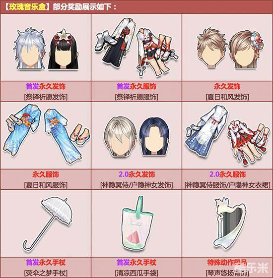 12月20日-2019年2月1日,在飞车商城购买【角色经验卡+100】,赠送【玫瑰音乐盒】,有机会得首发永久【祭铎祈愿发饰/服饰】、永久【夏日和风发饰/服饰】/【户隐神女发饰/神隐冥侍发饰/衣裙/服饰】或其他奖励之一!其中核心极品期限型概率范围为:4%-6%,核心奖励永久型概率范围为:2%-4%,非核心奖励概率范围为:90%-94%。