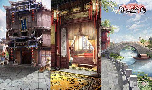 随着剧情的推进,小主会游历于不同场景之中。前朝正殿或是嫔妃寝宫、郊外古寺或是茶肆街坊,无处不显示出富丽宫闱之派。