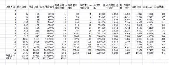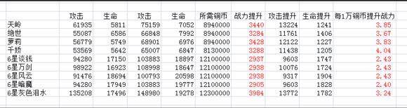 同时计算了铜币的性价比,数据同测试服不变,故也列了一本6星新心法,但实际我并没有