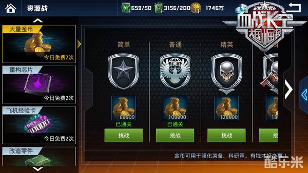 最直接提升战机指数的方式莫过于装备培养,包括了导弹、发动机、干扰弹和航电系统四个部位,守卫油田、资源战、军事基地就能够让你每日获得不可缺少的培养资源。每日通关守卫油田获得勋章,通关越多,守卫勋章越多,累计勋章用以兑换各种升级材料。每日资源战也是必可不少,经验卡、重构芯片、金币、改造零件、精研芯片、升星石免费可获取。同时也可以通过巡查获得丰厚的飞机碎片等奖励。