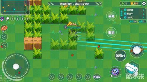 火箭炮是一次性使用技能,我们用手指按住它的图标,就会在我们角色前方出现一条攻击路线,按住图标的手指可以随意滑动来控制攻击方向,放开手指即可将火箭炮发射出去。